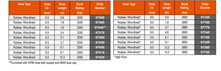 WIRE-BRAID RUBBER HOSES 1/4" & 3/8" I.D., 1400 BAR, 9761E