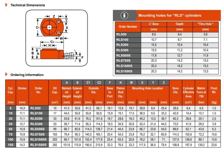■ Standard domed piston rod (5-30 tons) or swivel cap